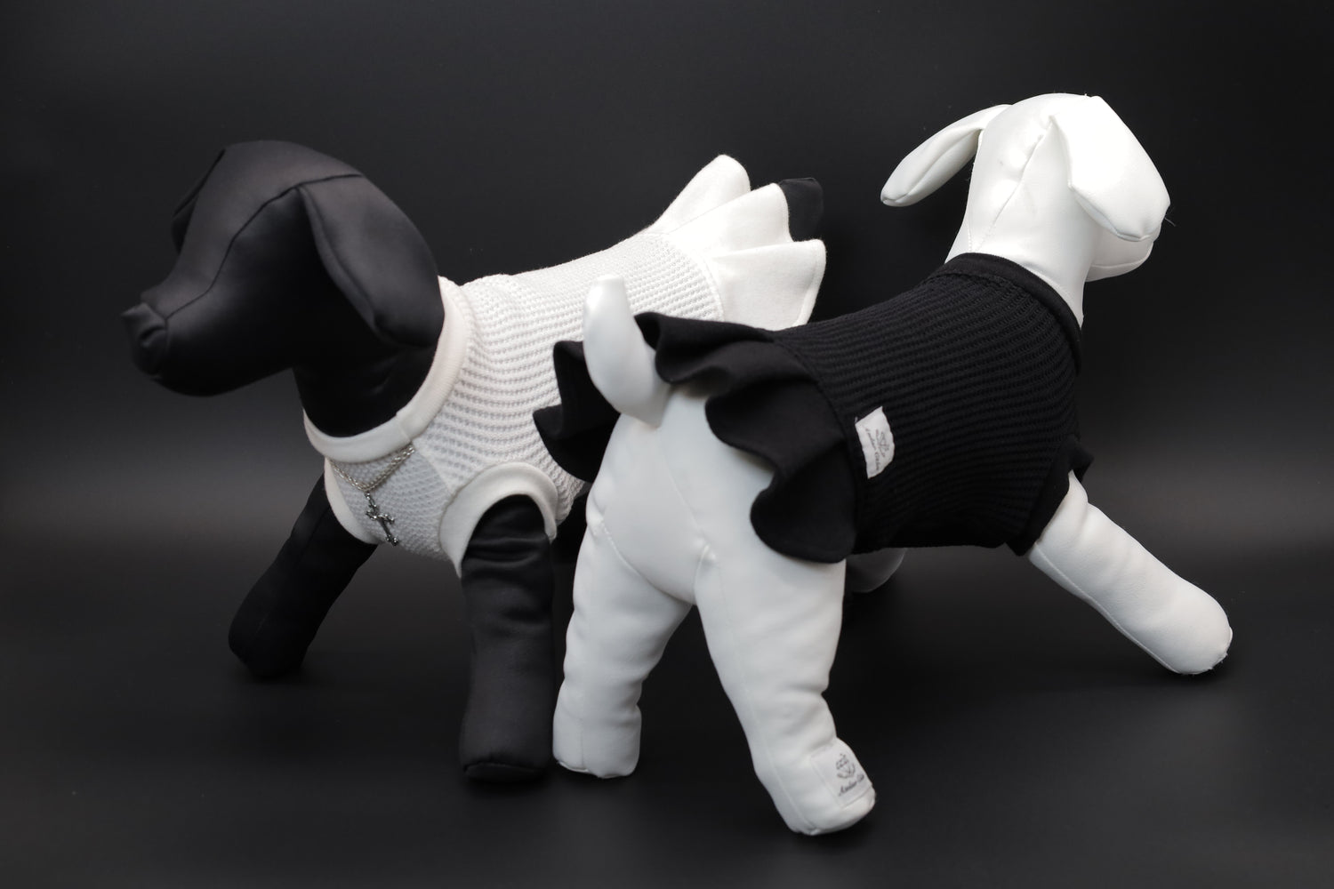 従来のWANドレスを継承。1着1着型紙から作成(パターン制作)し、愛犬にぴったりの1着をお作りします。規格サイズで合わないサイズ、特殊体型のワンちゃん。そして、ピッタリサイズの着心地、Luxury感を愛犬にも求める拘りのあなたにはこちらのオーダーメイドLINEをオススメします。プレタポルテ(規格サイズ品)の価格のほか、パターン代(パターン・型紙作成)が別途かかりますが、その分愛犬のためのオンリーワンの1着を制作・お届けします。